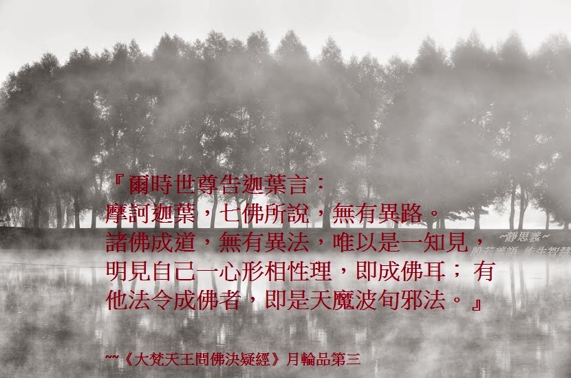 諸佛成道,無有異法,唯以是一知見,明見自己一心形相性理,即成佛耳;